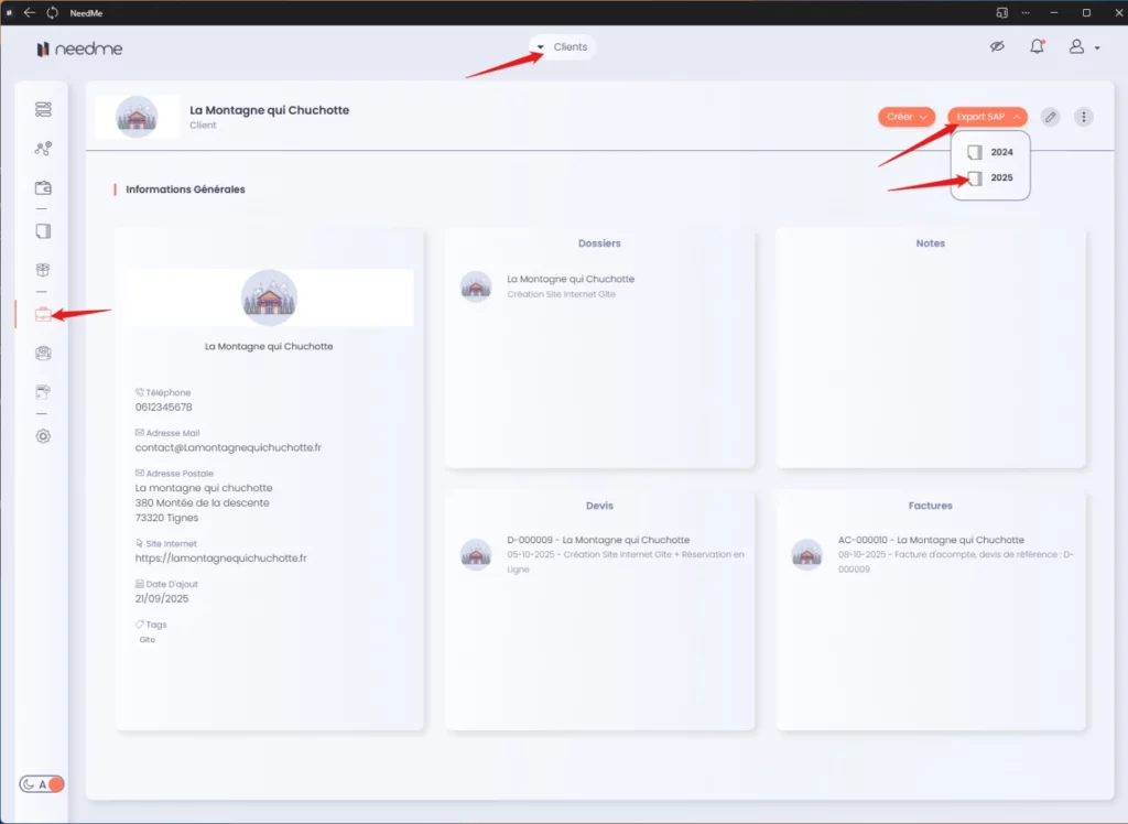 - Sur la fiche client, cliquez sur le bouton Export SAP.