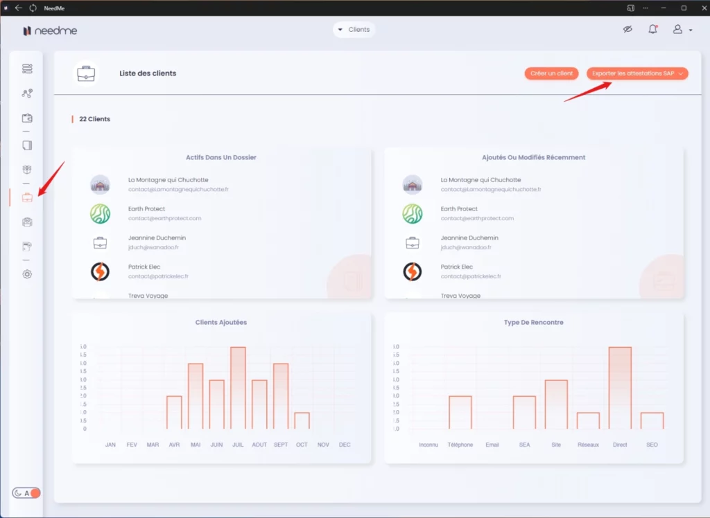 - Dans la barre de menu à gauche, ouvrez le menu Clients.